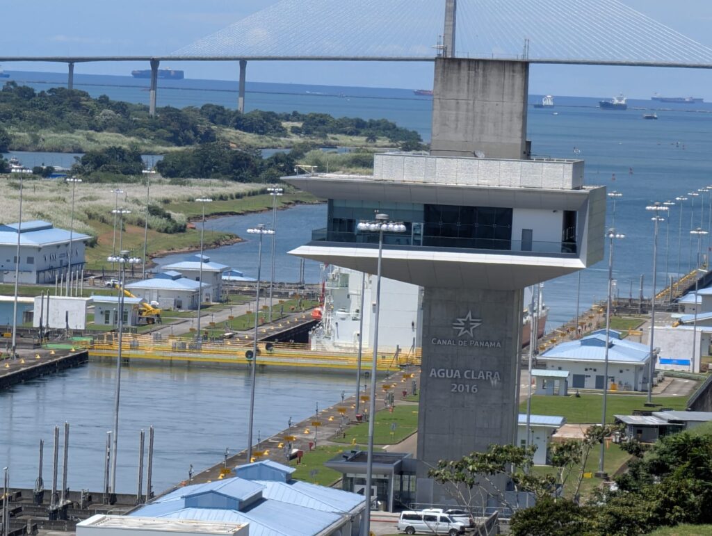 - “View from Agua Clara Locks — ships rising 26 m powered only by rainwater.”