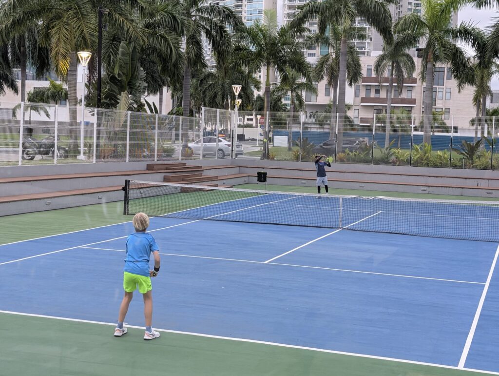 Taking advantage of the tennis courts on the island — which can be booked through an app without any extra fees — we managed to find a coach for Victor who comes for individual lessons. We often play together too, even in the evenings, since the courts are very well lit. He also plays padel once a week at the club, and we join him for games here on the island. We even managed to convince Bartek to buy a racket and join our “team.” On top of that, Victor has swimming lessons twice a week. After a medical consultation here in Panama, he got a strong recommendation for swimming as a form of back rehabilitation. We had to really convince him, since in Switzerland, swimming was the only sport he was “forced” to do — and he honestly disliked it. It turned out the water here is warm, and the instructor actually swims with the kids, observing and correcting every move — maximum three kids per instructor. After his first class, he said it was better than expected, and now he goes without complaint. I truly felt relieved that we won’t have to fight over it every time, especially since it’s a therapy for mild scoliosis, so skipping it wasn’t an option. I just don’t understand why in Switzerland they have such a military approach to swimming — and the cold water (in the name of energy saving) doesn’t help. Many kids I know dislike swimming lessons because instructors just stand on the edge in T-shirts instead of being in the pool — not exactly motivating! Clearly, high demand there doesn’t push them to improve.