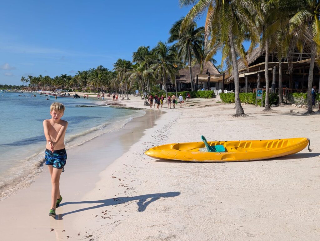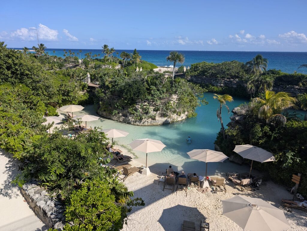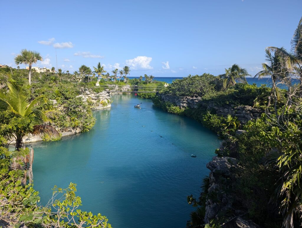 The second week was much more relaxed. We spent a few days at the vast Xcaret resort, an eco-archaeological park located by the ocean — a very unconventional amusement park — followed by several days at a beautiful hotel near Playa del Carmen. We were also incredibly lucky that during our stay, the beaches were free of seaweed, which in recent years has plagued the Yucatán coast. Efforts are being made to combat it, but clearly, humans remain powerless against the forces of nature.